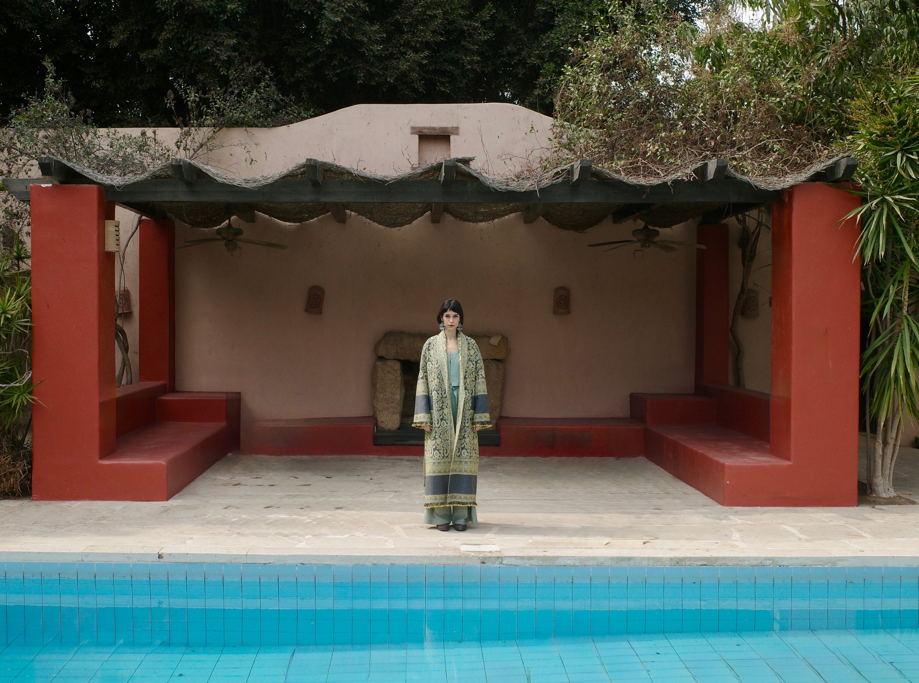 Structured blazer made using the Egyptian OMDA scarf. Features front pockets. Woven wool-cotton mix. Color:...