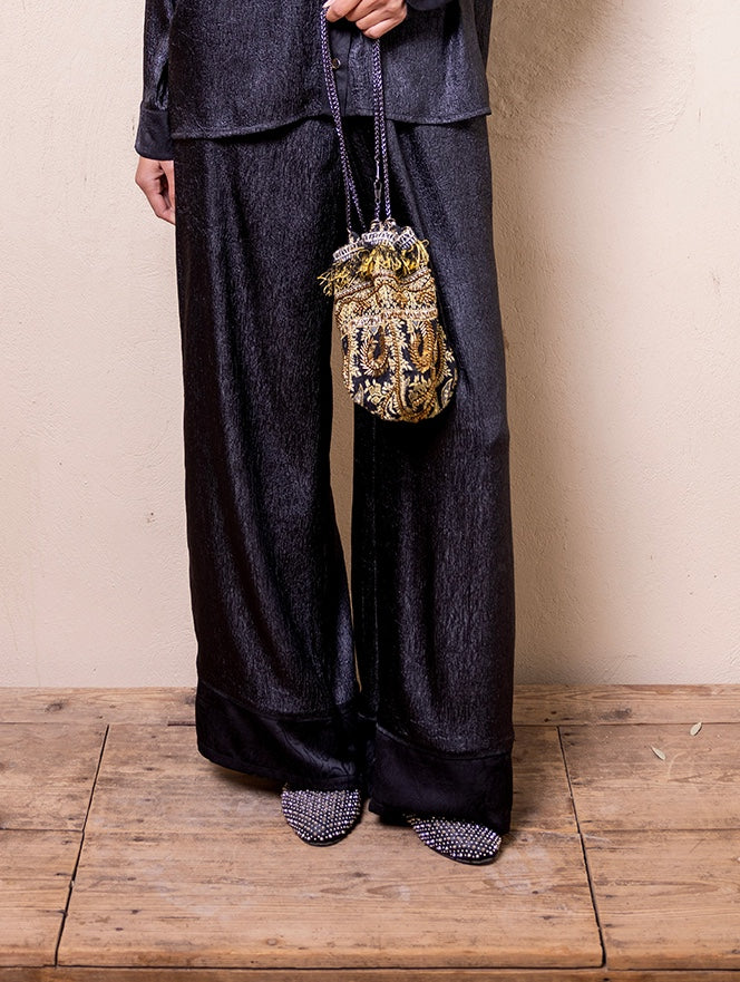PB 04 High-waisted wide-leg pants, features binding detail at side seam pocket, leg cuff, and...