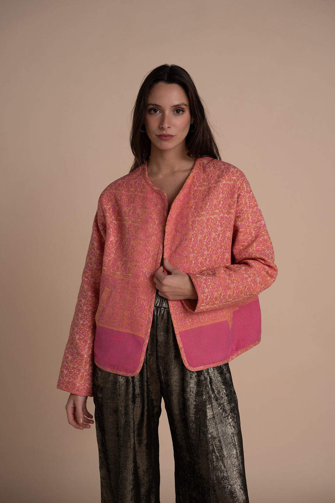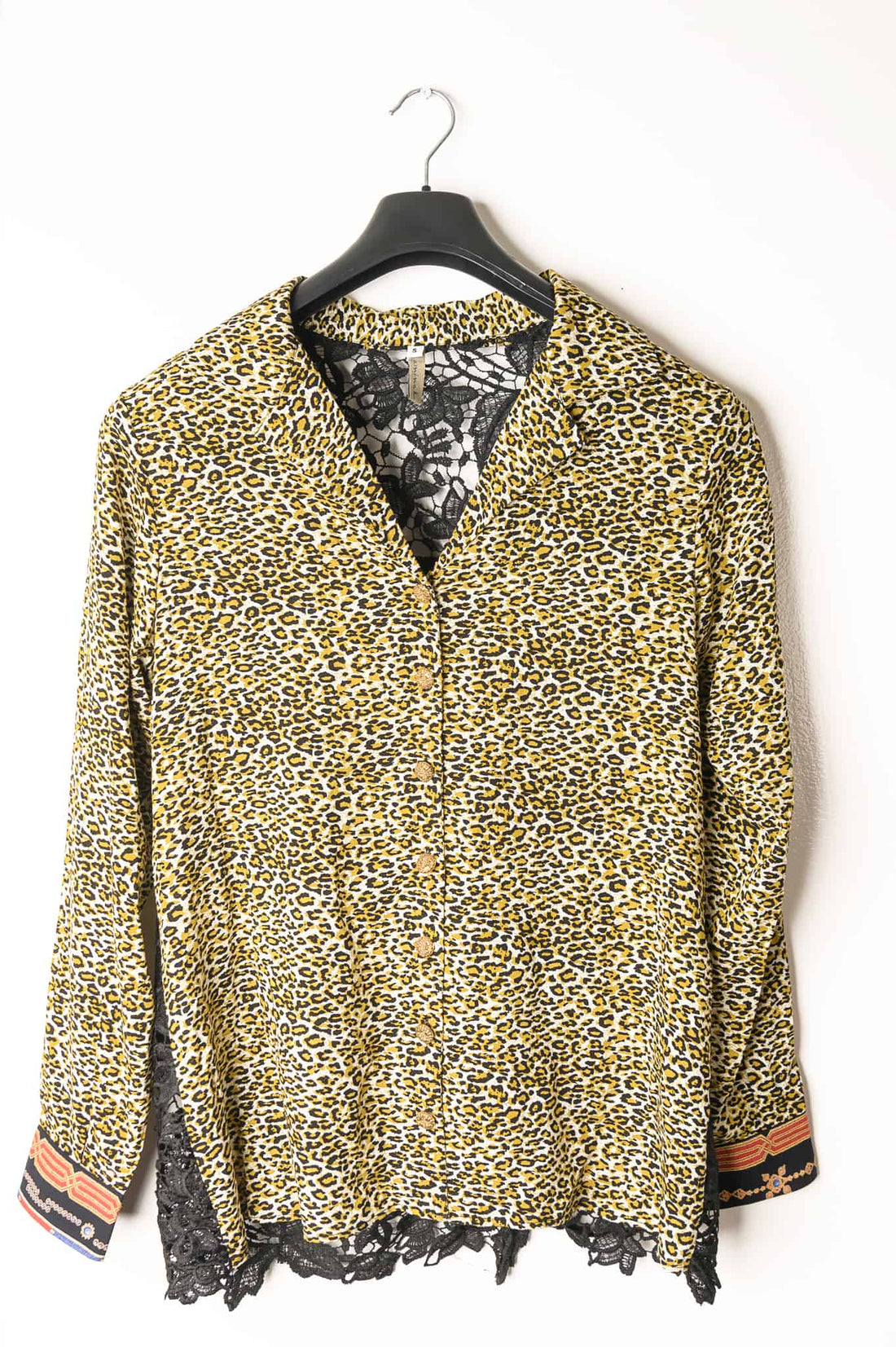 SBL 01 Printed viscose shirt, features a lace back, a notch collar, colof-blocked cuffs, and...