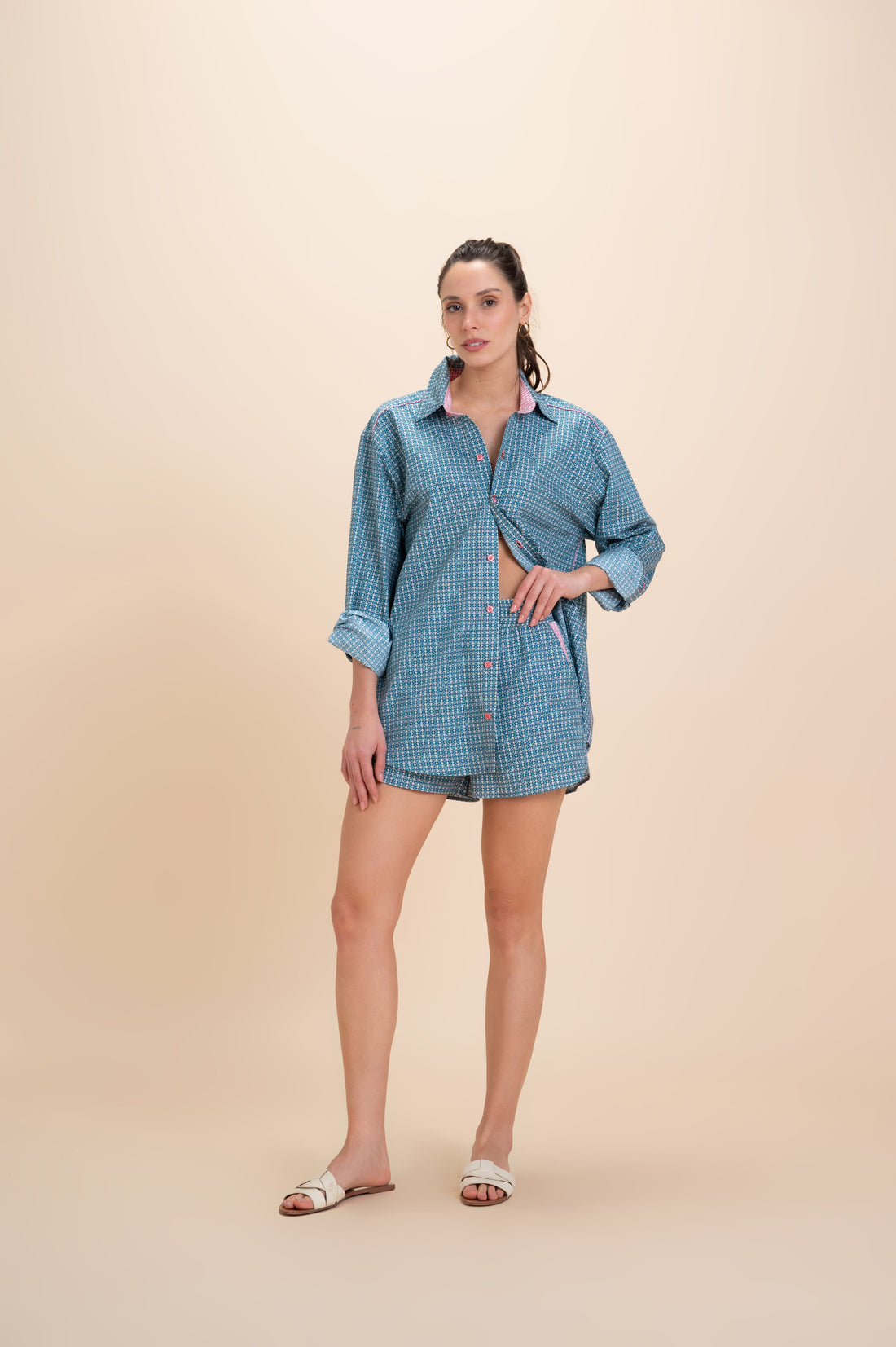 Printed cotton poplin shirt. Featuring pink buttons and buttonholes, a chest pocket and pink checkered...