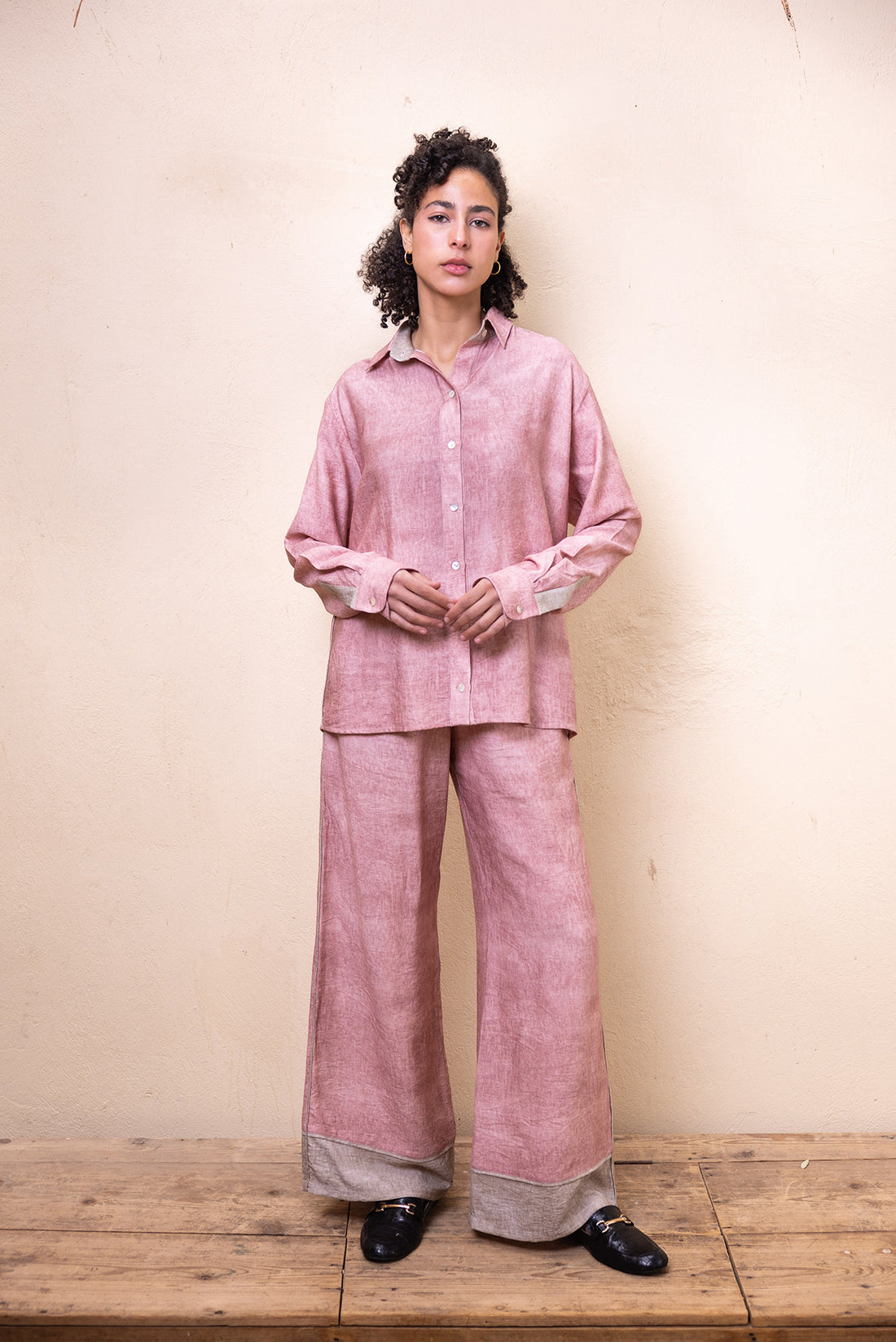 Oversized linen mix shirt with with a beige piping detail down the sides and an...