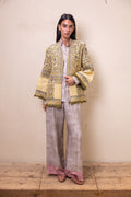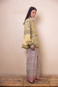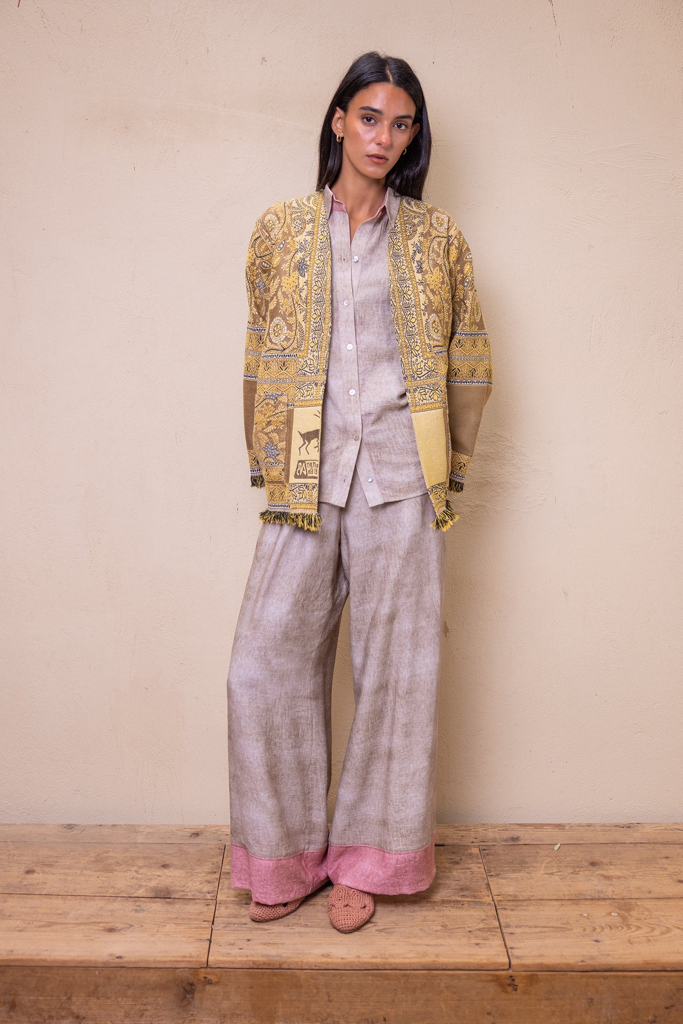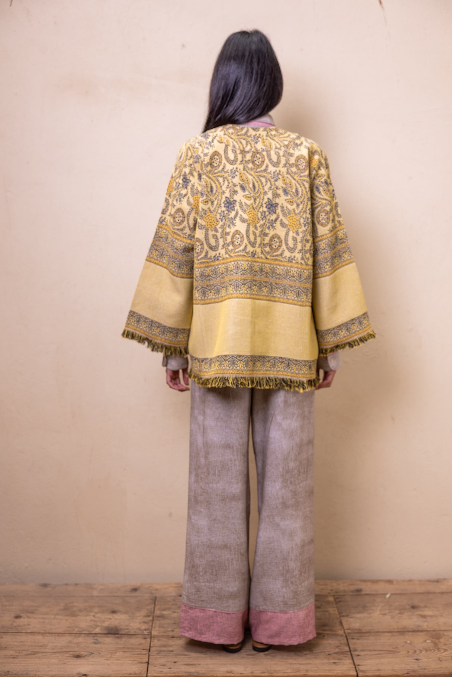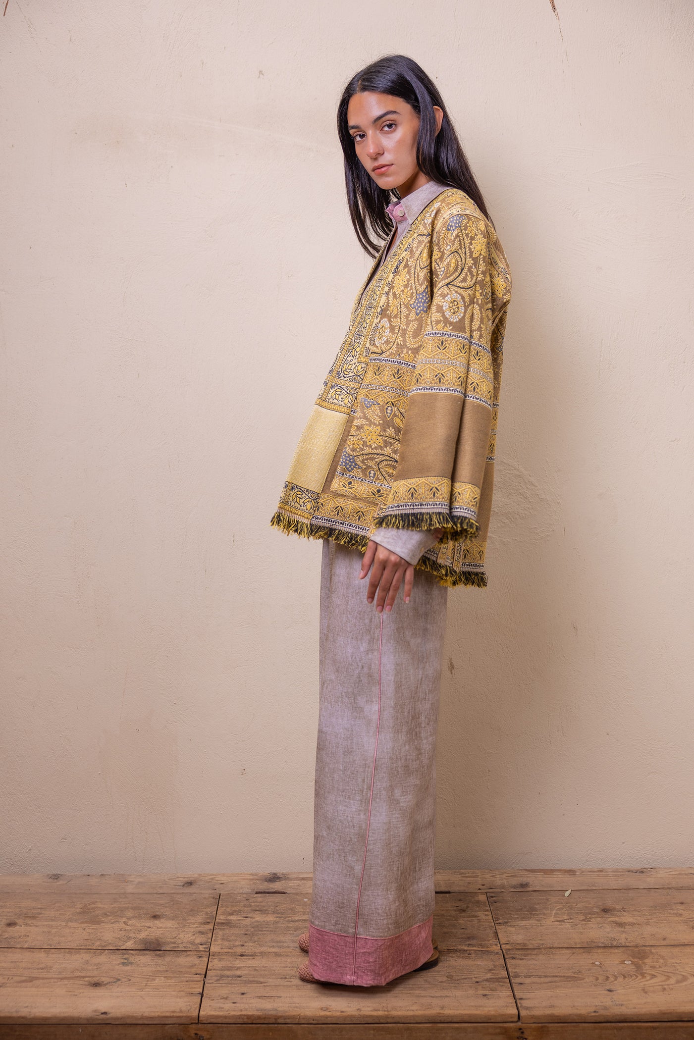 Woven cotton wool mix mid-length, reversible Omda kaftan with fringes at the sleeve and at the hem.